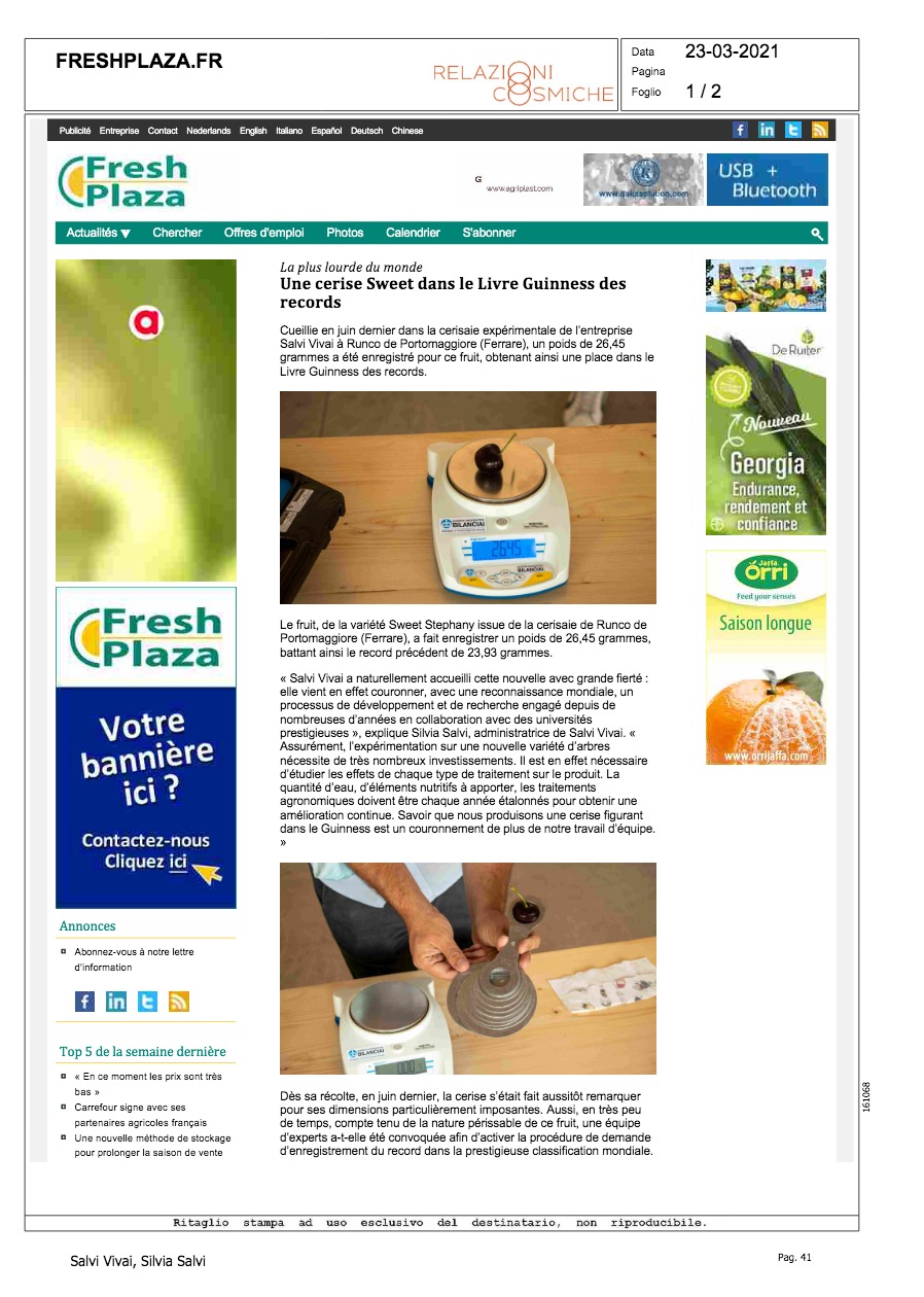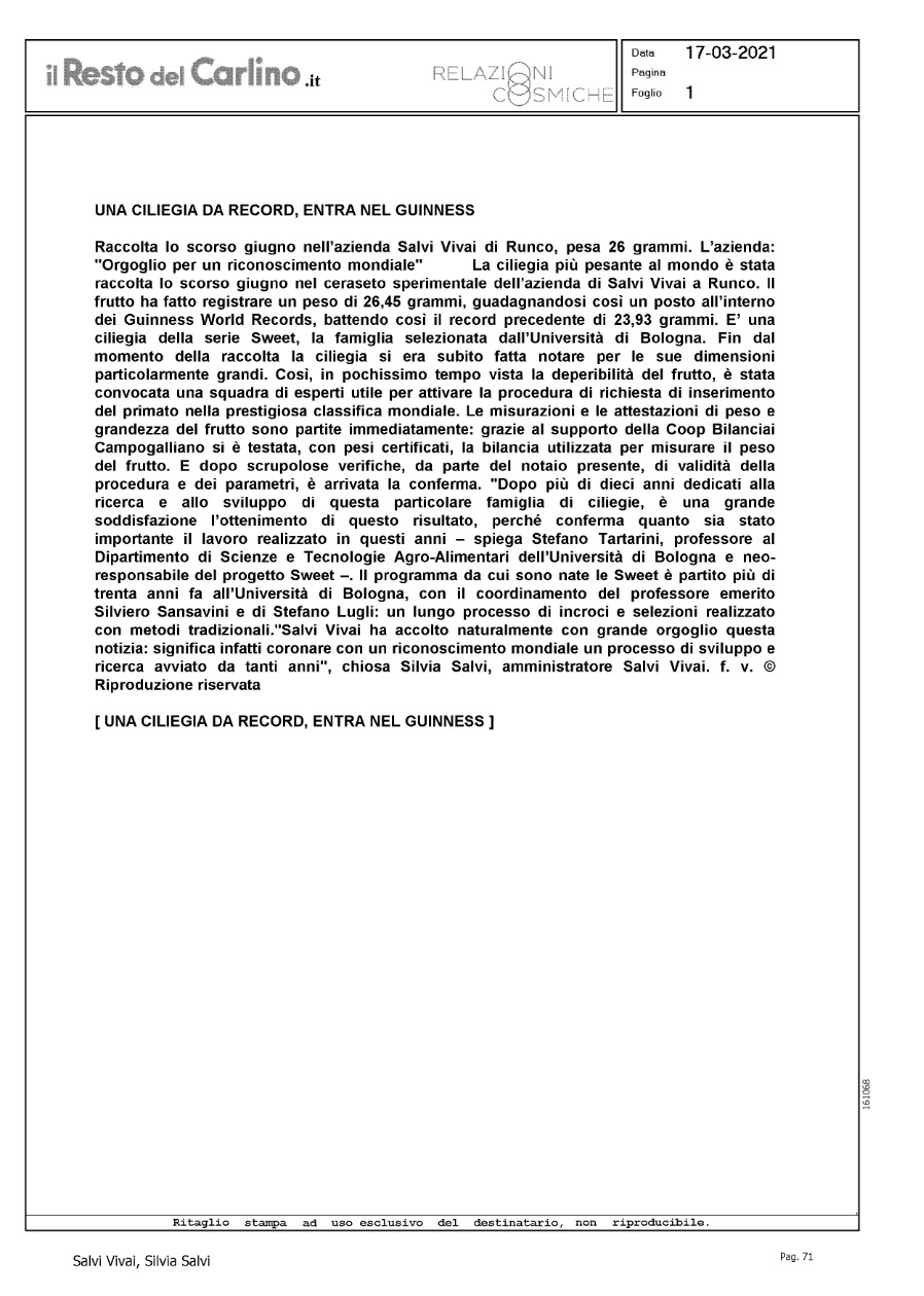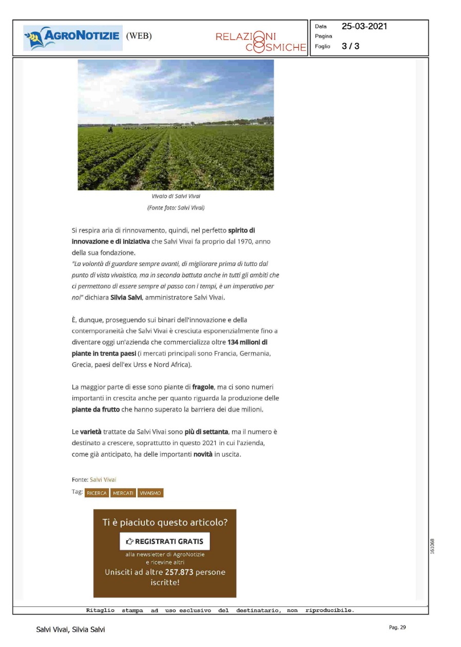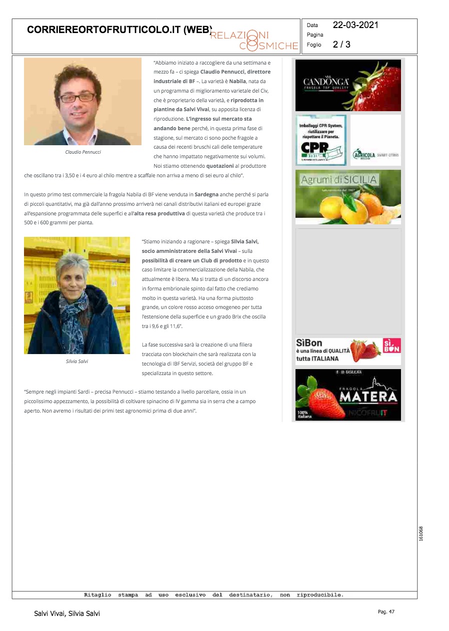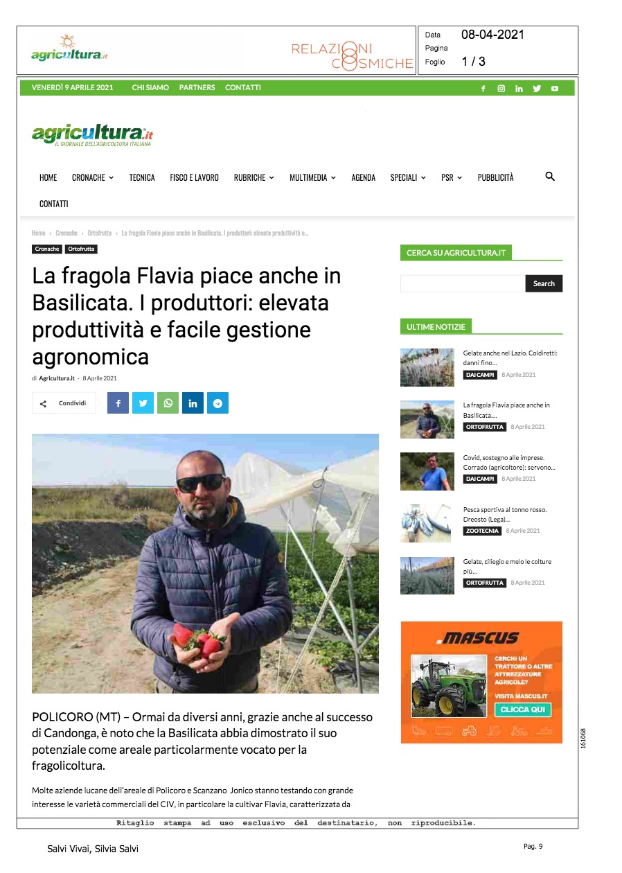 Salvi Vivai da cinquant’anni produce e vende piante di fragole, melo, pero, ciliegio e portinnesti di melo e pero. I Vivai sono conosciuti in Italia e a livello internazionale per la loro alta qualità e per l’innovazione costante grazie alla continua ricerca varietale.