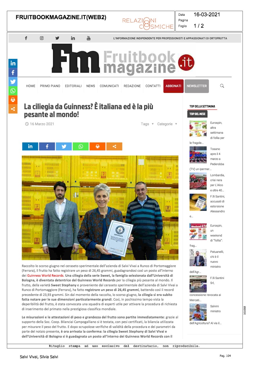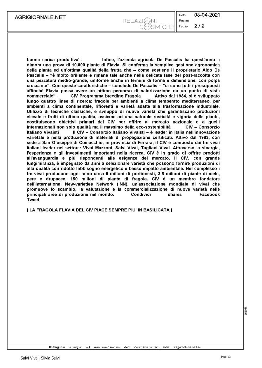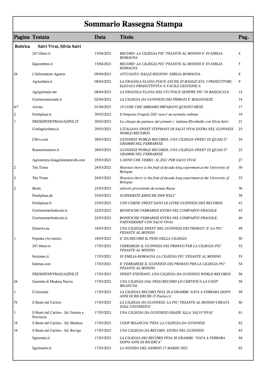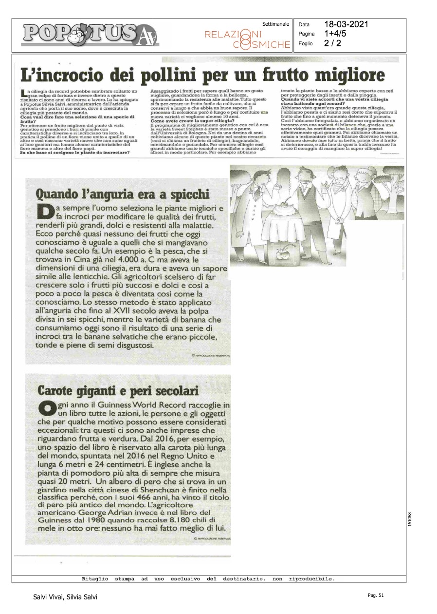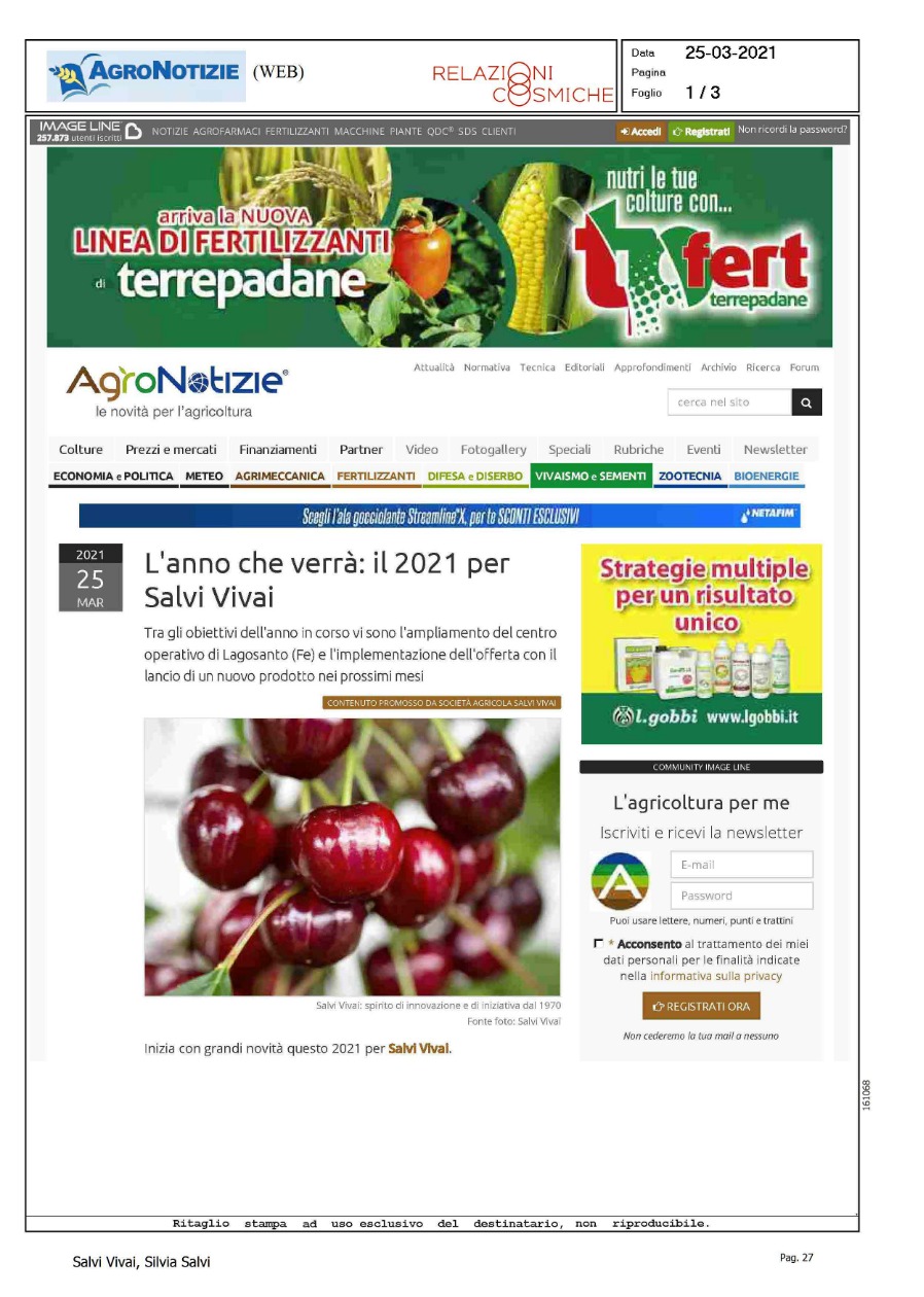 Salvi Vivai da cinquant’anni produce e vende piante di fragole, melo, pero, ciliegio e portinnesti di melo e pero. I Vivai sono conosciuti in Italia e a livello internazionale per la loro alta qualità e per l’innovazione costante grazie alla continua ricerca varietale.