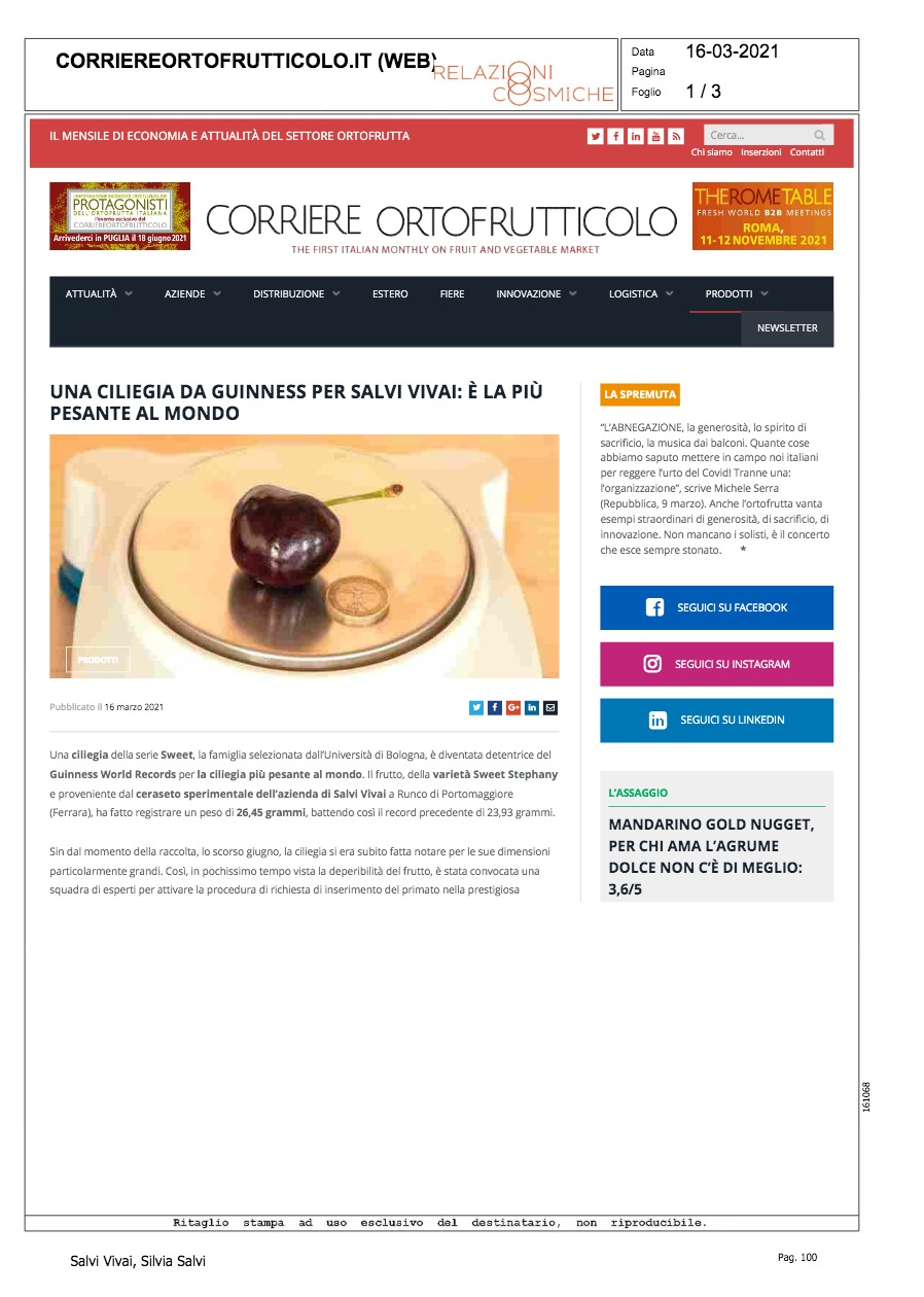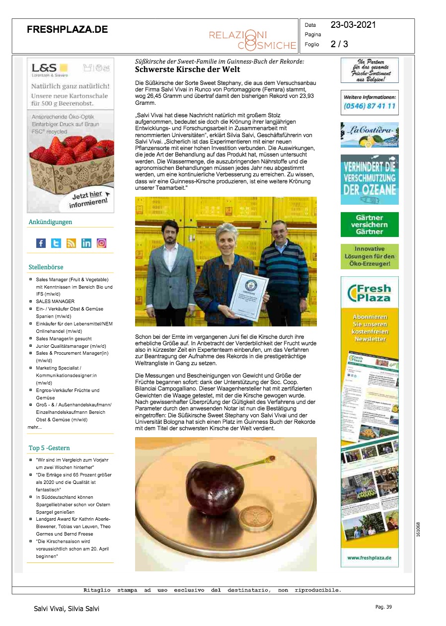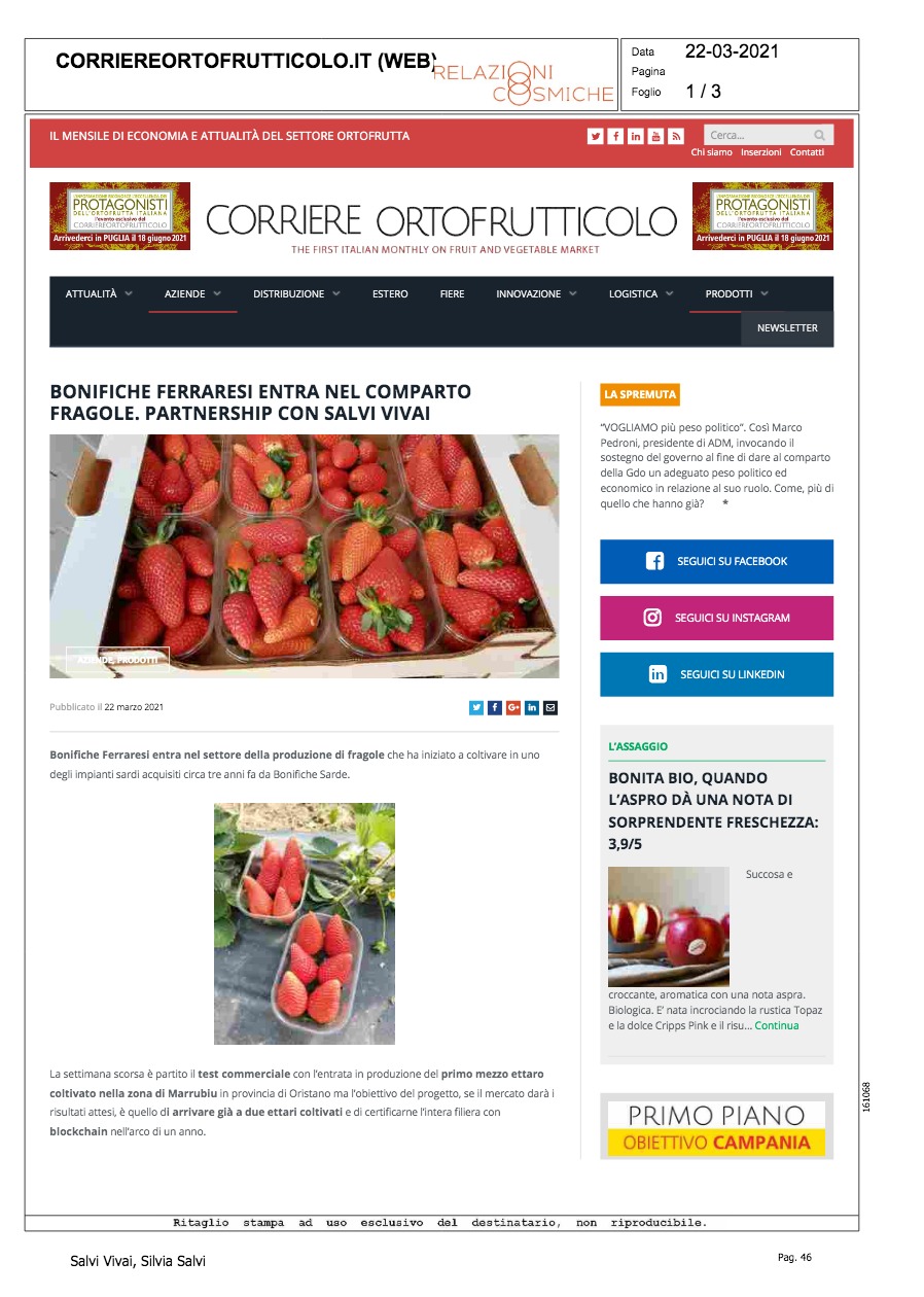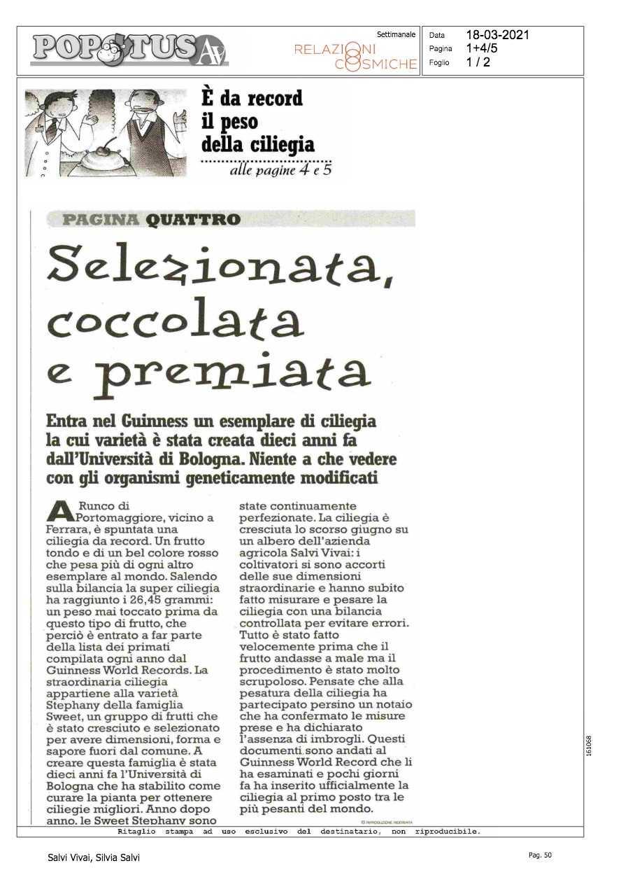 Salvi Vivai da cinquant’anni produce e vende piante di fragole, melo, pero, ciliegio e portinnesti di melo e pero. I Vivai sono conosciuti in Italia e a livello internazionale per la loro alta qualità e per l’innovazione costante grazie alla continua ricerca varietale.