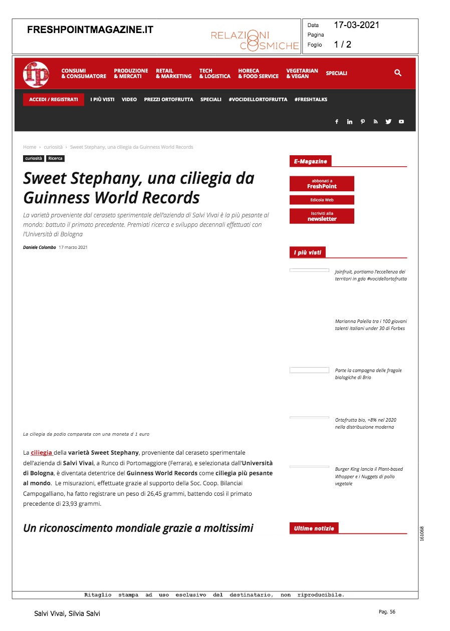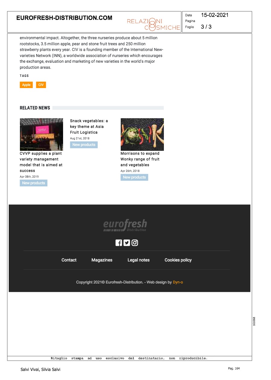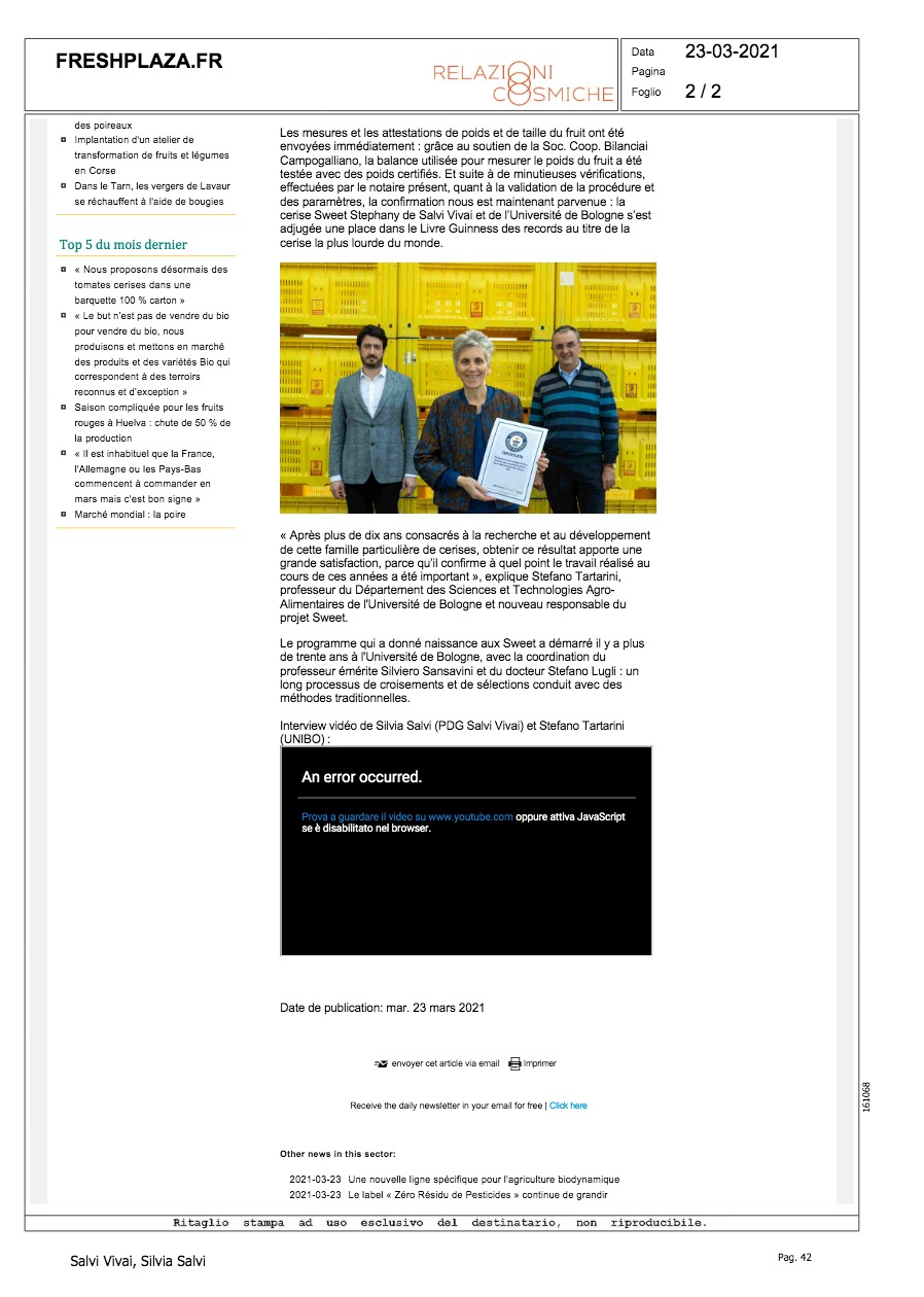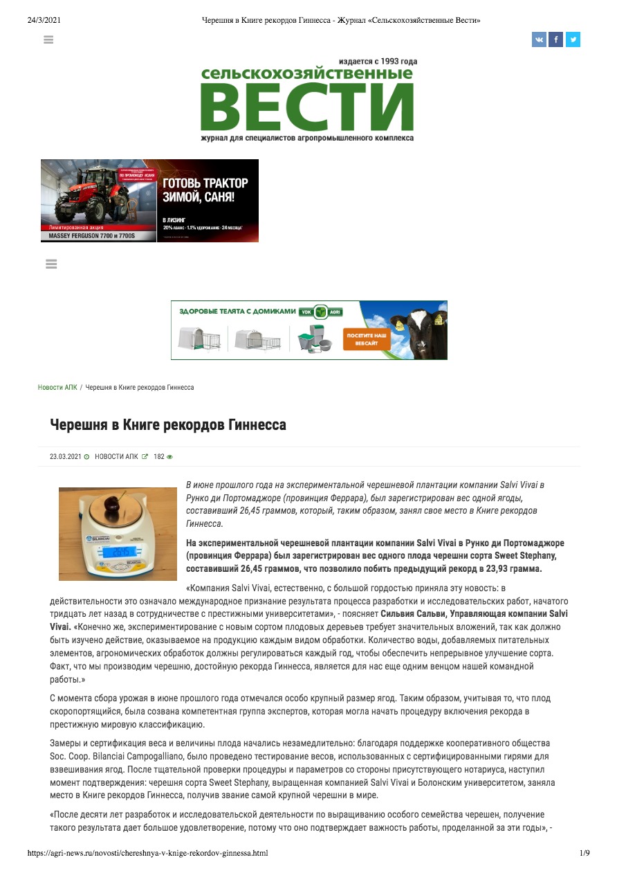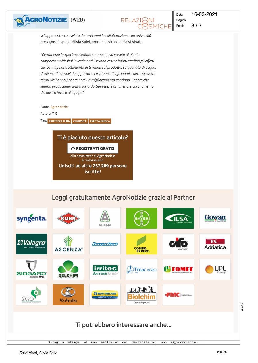 Salvi Vivai da cinquant’anni produce e vende piante di fragole, melo, pero, ciliegio e portinnesti di melo e pero. I Vivai sono conosciuti in Italia e a livello internazionale per la loro alta qualità e per l’innovazione costante grazie alla continua ricerca varietale.