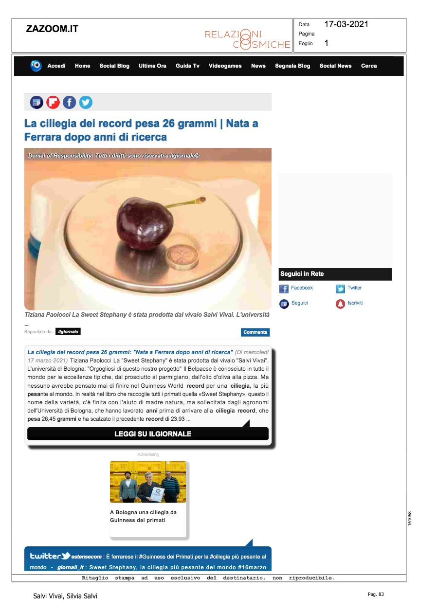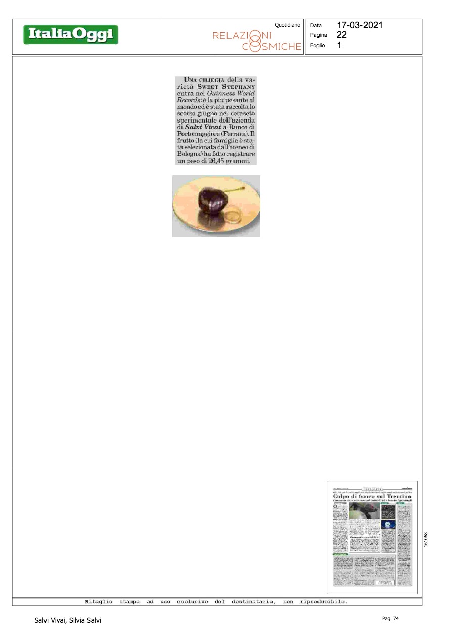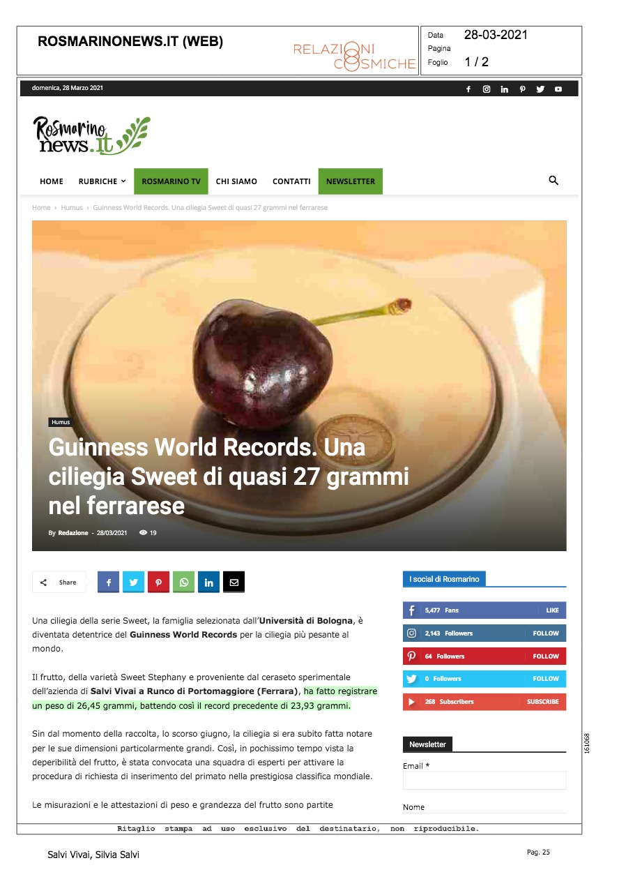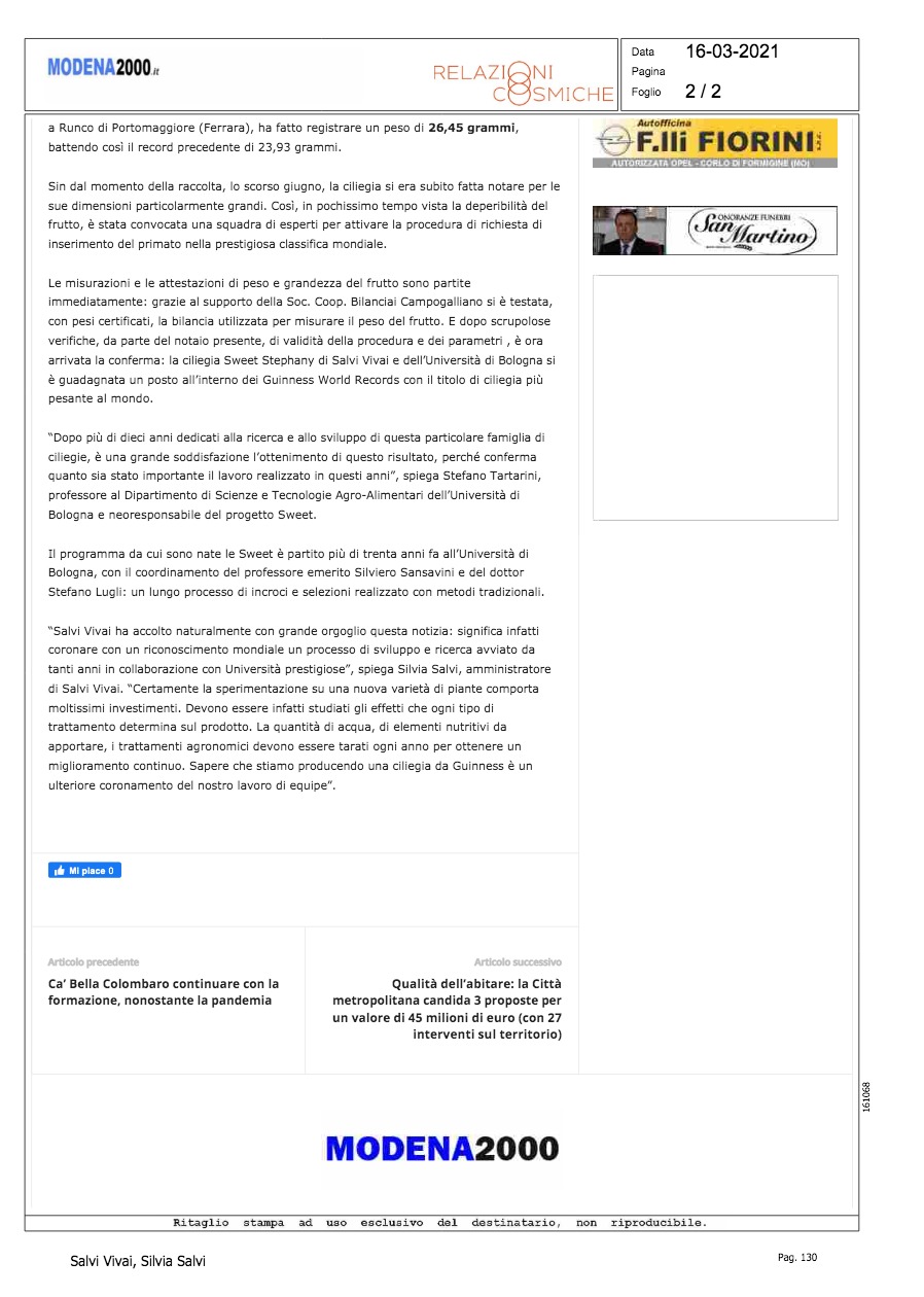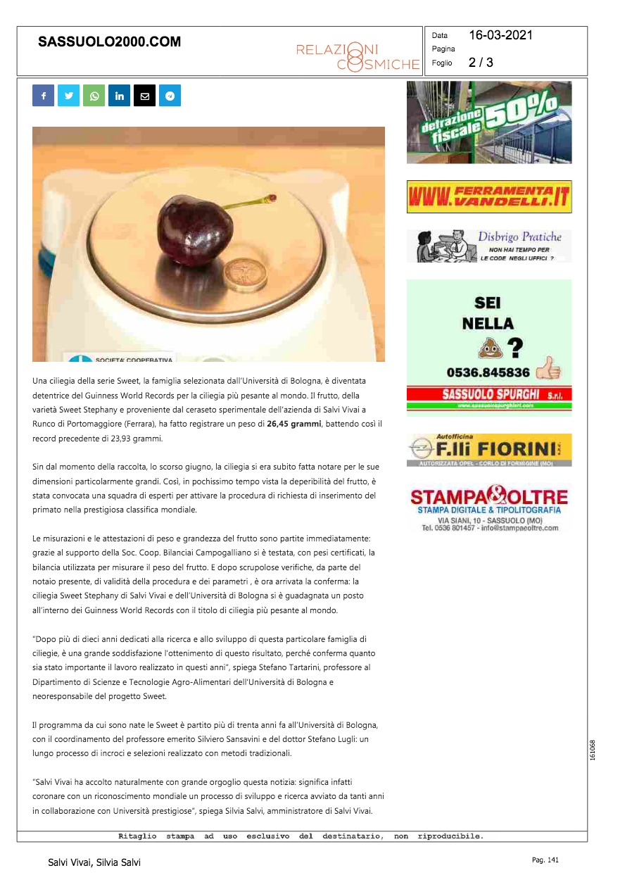 Salvi Vivai da cinquant’anni produce e vende piante di fragole, melo, pero, ciliegio e portinnesti di melo e pero. I Vivai sono conosciuti in Italia e a livello internazionale per la loro alta qualità e per l’innovazione costante grazie alla continua ricerca varietale.