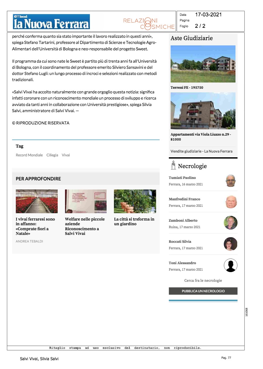 ©2024 Società Agricola SALVI VIVAI s.s. - Piazzale Luigi Salvi n. 1 - 44124 Ferrara - CF/P.IVA 01405510387 - Cookie e Privacy – Credits: Relazioni Cosmiche- Powered by Digife